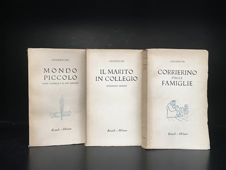 GUARESCHI G. Prime edizioni rizzoli in brossura (senza sovracoperta) di Don Camillo e il suo Gregge e Corrierino delle Famiglie. SI aggiunge Il Marito in collegio edizione successiva. Non collazionato e difetti da esaminare.