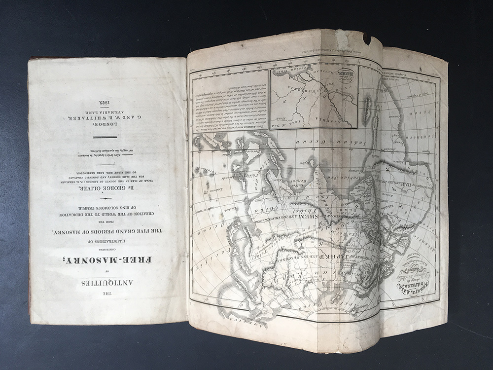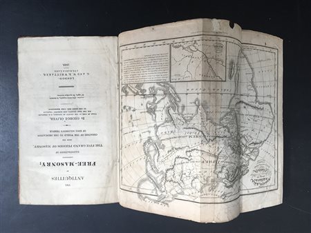 OLIVER G. De antiquities of Free-Masonry. Londra: Whittaker, 1823. 8vo esemplare a pieni margini con barbe con 5 tavole ripiegate fuori testo . delle quali 4 sono carte geografiche. Buona legatura del ‘900 in t.pelle. Non collazionato e difetti da esaminare.