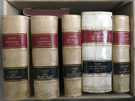 ONCKEN, G. Storia Universale illustrata. Milano: Società Editrice Libraria, 1902. 4to, mezza pergamena coeva, numerose illustrazione nel testo. Non collazionato e difetti da esaminare.