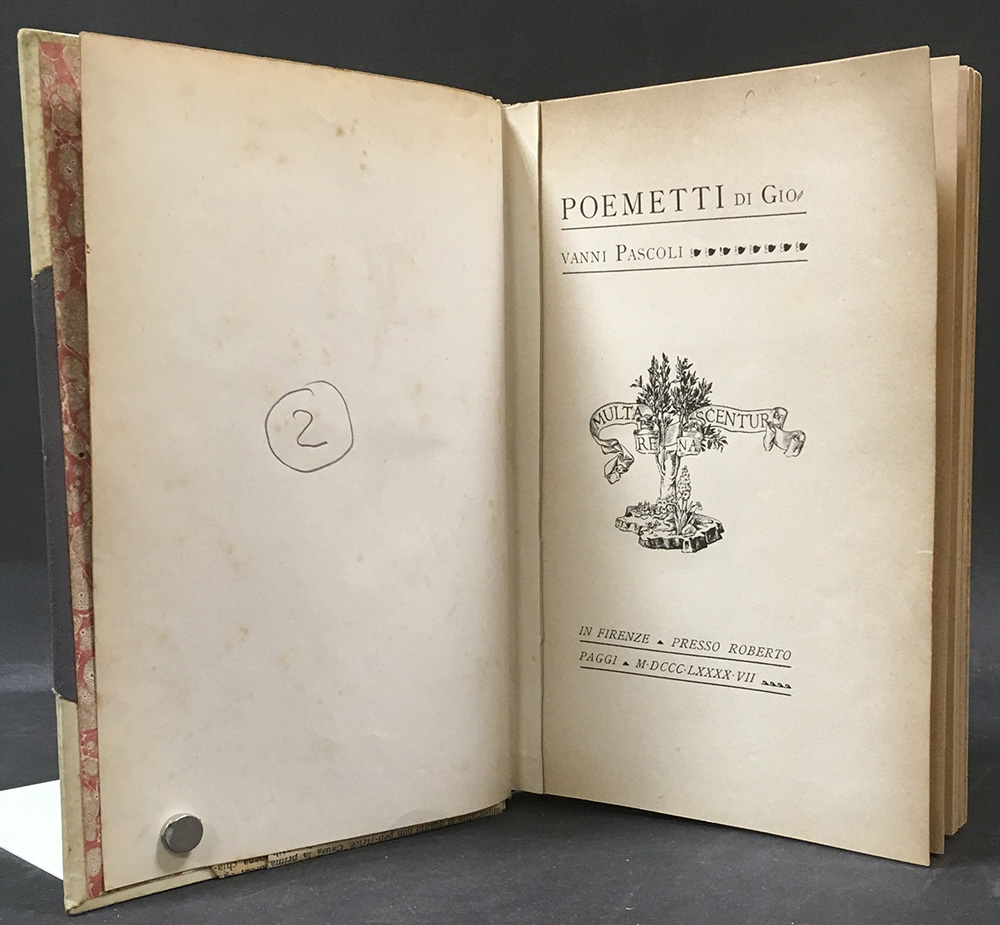 PASCOLI Giovanni. Poemetti. Firenze: Paggi, 1897. 8vo; legatura dell’epoca in...