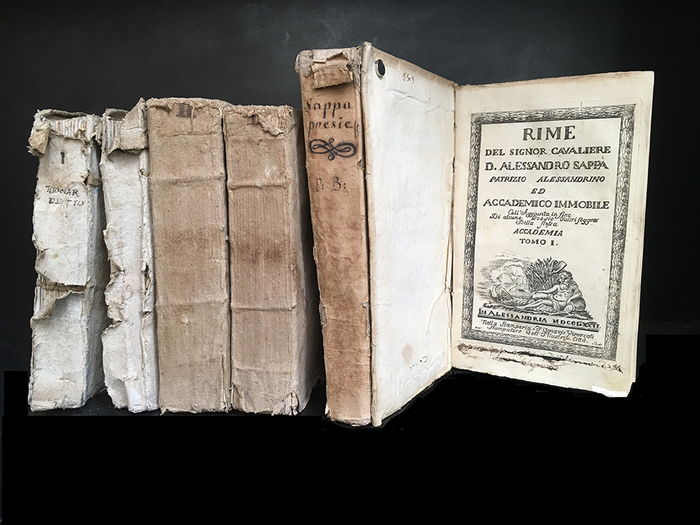 [POESIA] Lotto di 3 opere poetiche del XVIII secolo in legatura coeva: FORTIGUERRI N. Ricciardetto, Venezia: Zatta, 1789. 8vo, 2 voll. brossura coeva. GAETANI P. Crestomatia italiana. Lipsia: Lebrecht, 1784 8vo, 2 voll brossura coeva. SAPPA A. Rime. Alessandria: Vimercati, 1772. 8vo, frontespizi xilografici e vignette nel testo. brossura coeva con titiolo manoscritto al dorso. Non collazionato e difetti da esaminare.