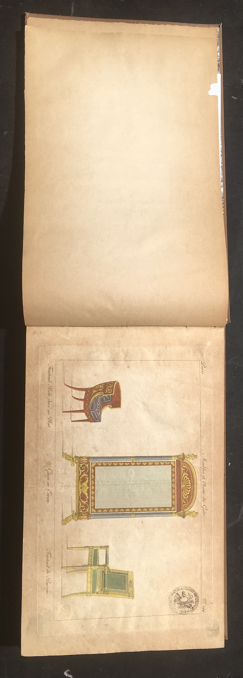 [RACCOLTA DI TAVOLE DA:] Meubles et Objets de Gout. Una raccolta di numerose tavole colorate a mano. Folio oblungo (222 x 354mm). Dalla tavola n.244 alla 402. In legatura in pelle posteriore. Non collazionato e difetti da esaminare.