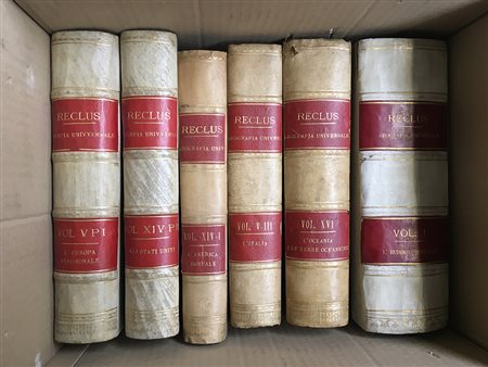 RECLUS, E. Nuova Geografia Universale. Milano: Società Editrice Libraria, 1900. 4to, mezza pergamena coeva, numerose illustrazioni nel testo. Non collazionato e difetti da esaminare.