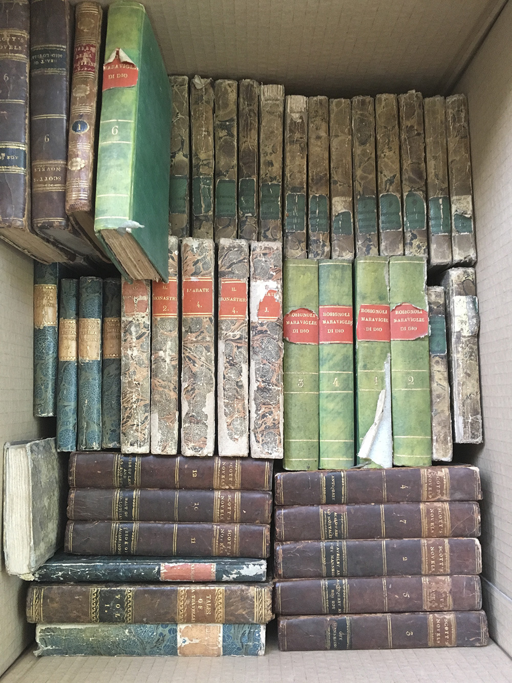 [ROMANTICISMO] Lotto di romanzi in 12mo e 16mo degli inizi del XIXI secolo in belle legature coeve in cartonato marmorizzato, alcuni illustrati. Non collazionato e difetti da esaminare.