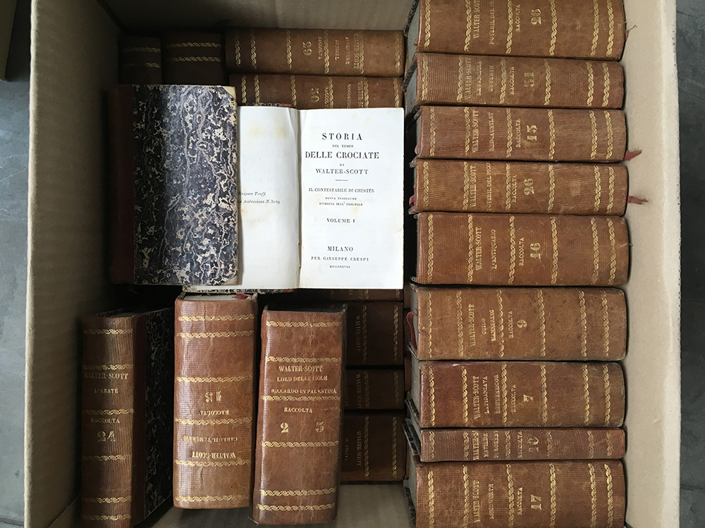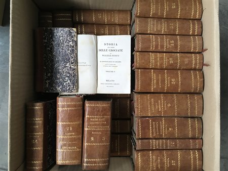 WALTER SCOTT. Opere. Milano: Crespi, 1828-33. 38 voll in 16mol Legature coeve in mezza pelle con titolo in oro manoscritto al dorso. Grande raccolta delle opere di Walter cott tradotte in italiano. Non collazionato e difetti da esaminare.