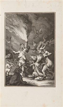 SEDAINE, Michel Jean (1719-1797) - La Tentation de S. Antoine - Le Pot-pourri de Loth. Londra (ma forse Parigi?): 1781. 8vo (190 x 124mm). Occhiello, antiporta, 8 tavole incise in rame fuori testo e 8 pagine di musica nella prima opera; occhiello, antiporta, 8 tavole incise in rame fuori testo e 12 tavole di musica nella seconda (alcune fioriture). Pelle coeva ad albero decorata in oro ai piatti, dorso e tagli (giunture fragili e alcuni segni di usura). Provenienza: Isabella F. (exlibris). Bella edizione riccamente illustrata delle due opere.