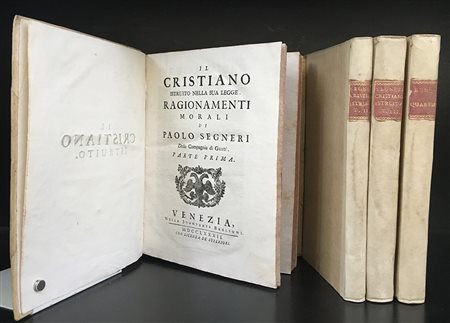 SEGNERI Paolo. Il Cristiano istruito nella sua legge. Ragionamenti Morali. Venezia: Stamperia Baglioni, 1782. 3 volumi in 4to, bella copia in mezza pergamena coeva, tagli a spruzzo rossi.