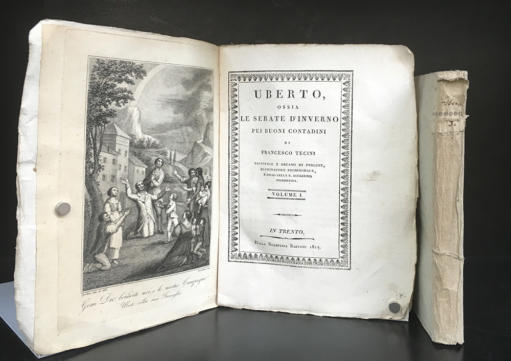 TECINI F. Uberto ossia le serate d'inverno dei buoni contadini. Trento: Battisti, 1817. 2 volumi in 8vo, antiporta incisa in rame. Cartone coevo. Non collazionato e difetti da esaminare.