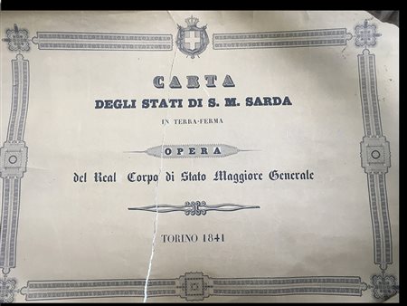 [PIEMONTE] Carta degli Stati di S.M. Sarda. Opera del Real Corpo di Stato Maggiore. Torino: 1841. Folio elefante contenente 5 mappe dello Stato di Sardegna, brossura originale stampata in nero (alcuni strappi e difetti in particolare alla brossura). Non collazionato e difetti da esaminare.