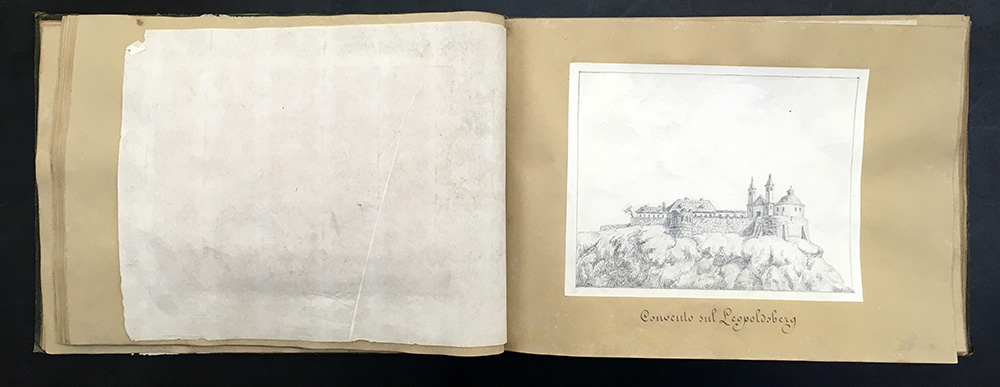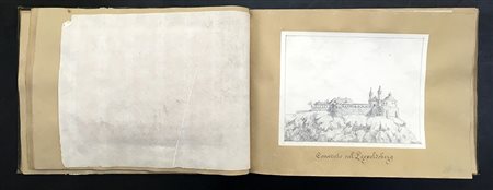 PORRO Carlo. XXIV schizzi disegnati dal vero memoria di un viaggio nell’Illiria, Carniola, Carinzia, Stiria, Austria ed Ungheria. anno 1832. Album di disegni in.8° oblungo. Bella legatura in tutto zigrino verde con fregi ai piatti e al dorso. Non collazionato e difetti da esaminare.