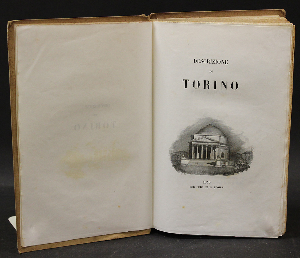 [TORINO] BERTOLOTTI Davide. Descizione di Torino. Torino: Pomba, 1840. Cartonato editoriale stampato in nero. Non collazionato e difetti da esaminare.