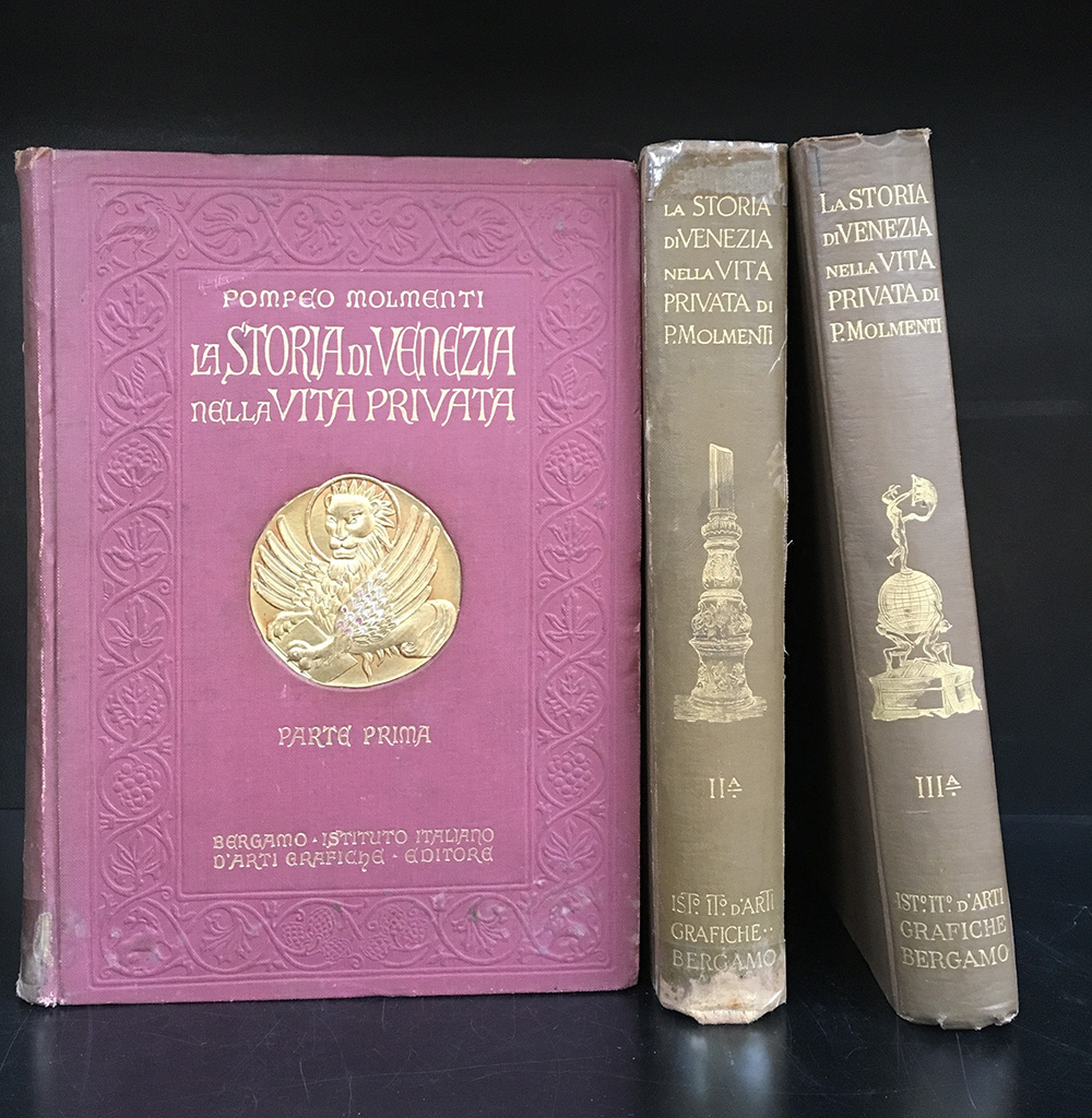 [VENEZIA] MOLMENTI P. La storia di Venezia nella vita privata. Bergamo: Istituto italiano d'Arti Grafiche, 1922-26. Legature editoriali decorate in oro, numerosissime illustrazioni. Non collazionato e difetti da esaminare.