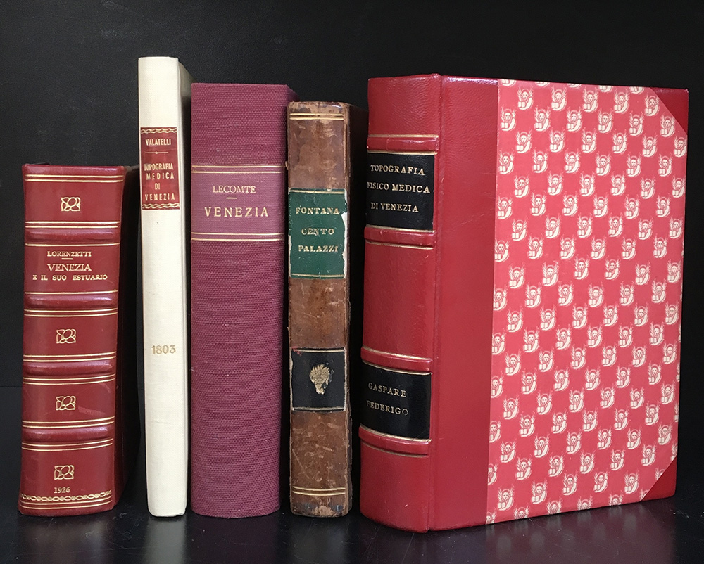[VENEZIA] Una serie di volumi che riguardano Venezia: LORENZETTI. Venezia e il suo estuario. Insieme a VALATELLI. Topografia Fisico-Medica. FEDERIGO. Topografia fisico-medica. FONTANA. Cento Palazzi. LECOMTE, Venezia. Non collazionato e difetti da esaminare.