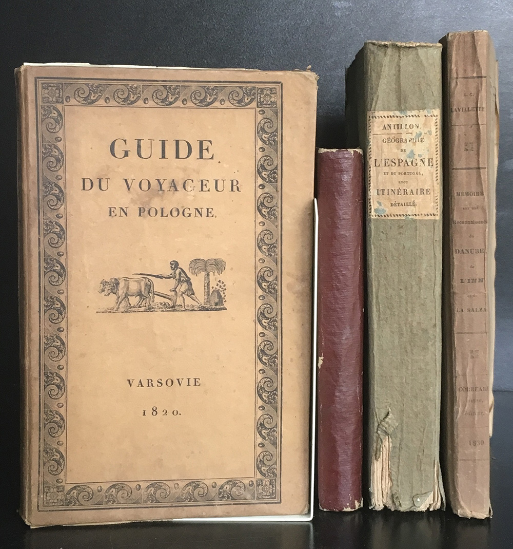 Lotto di 3 opere: Guide des voyageurs. Amsterdam: Maaskamp, [inizi XIX secolo] 12mo, una grande carat geografica ripiegata, vignetta al frontespizio. legatura posteriore in cartonato; ANTILLON I. Géographie physique et politique de l'Espagne et du Portugal. Parigi: Picquet, Kilian, 1823. 8vo, brossura coeva con titolo stampato su tassello al dorso. LAVILLETTE, Mémoire sur une reconnaissance d'une partie du cours du Danube, de l'Inn, de la Salza. Parigi: Correard, 1829. Una carta più volte ripiegata, due facsimili più volte ripiegati. Brossura editoriale stampata. Non collazionato e difetti da esaminare.