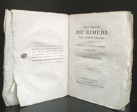 LANZA Carlo. Sull'azione de' rimedi nel corpo umano. Mantova: Società...