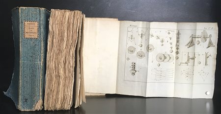 POISSON S. D. Traité de Mécanique. Parigi: Courcier, 1811. 8vo, 2 voll. 5; 3 tavole più volte ripiegate. Brossura coeva con titoli stampati su tassello al dorso. Prima edizione dell'opera di Siméon Denis Poisson, accademico di Francia e innovatore nel campo della matematica. Non collazionato e difetti da esaminare.