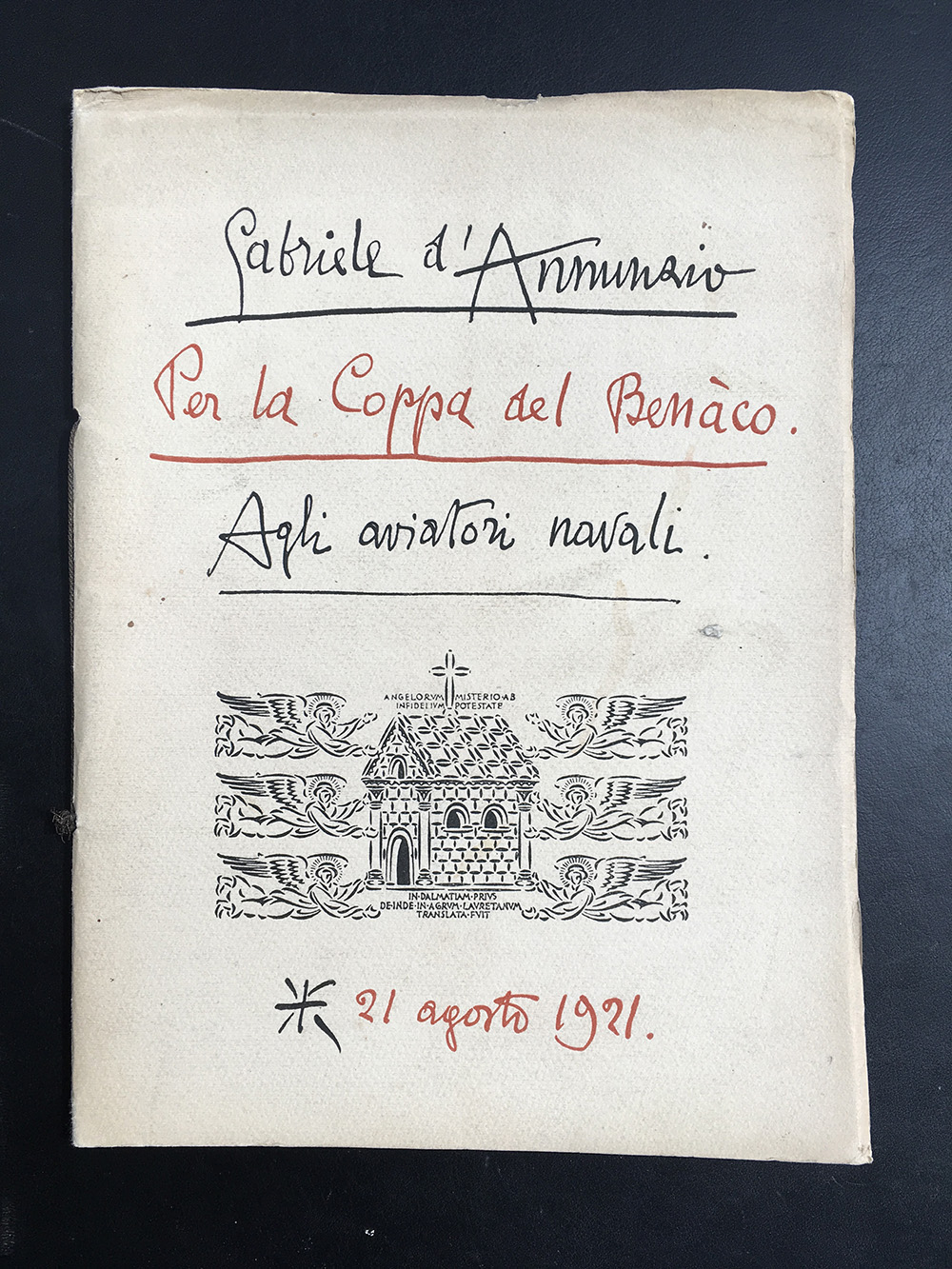 D'ANNUNZIO G. Per la coppa del Benaco agli aviatori navali, 21 agosto 1921. Milano: Pizzi e Pizzio 1921. 4to, Facsimile Esemplare nr. 1225.