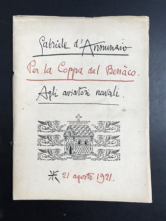 D'ANNUNZIO G. Per la coppa del Benaco agli aviatori navali, 21 agosto 1921....