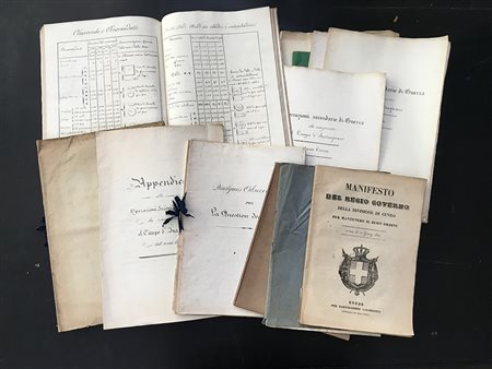 Lotto di pandette e documenti della prima metà del XIX secolo di interesse militare. Non collazionato e difetti da esaminare.