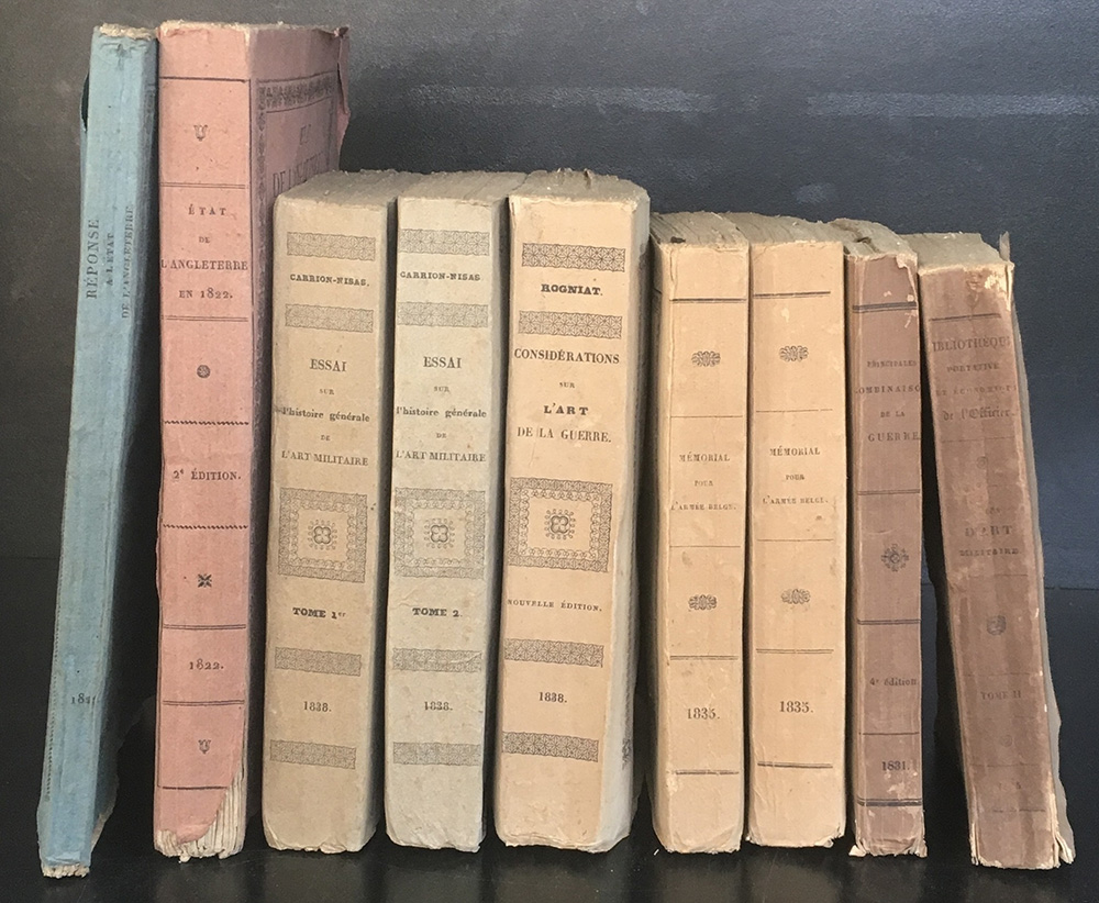 Una serie di libri del XIX secolo sull'arte militare che includono l'Etat de l'Angleterre e Reponse a l'etat de l'Angleterre (Parigi: 1822). 8vo, brossure editoriali. Non collazionato e difetti da esaminare.