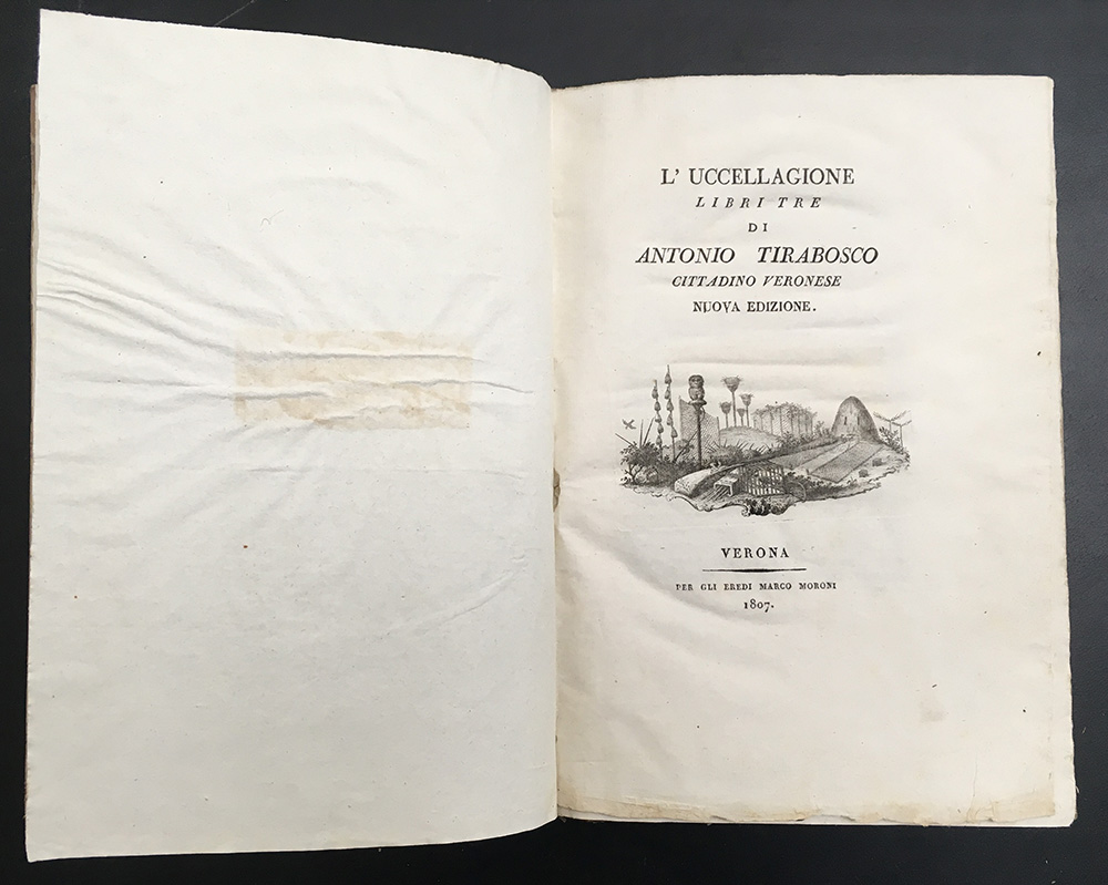 TIRABOSCO Antonio. L'uccellagione libri tre. Verona: per gli eredi Marco...
