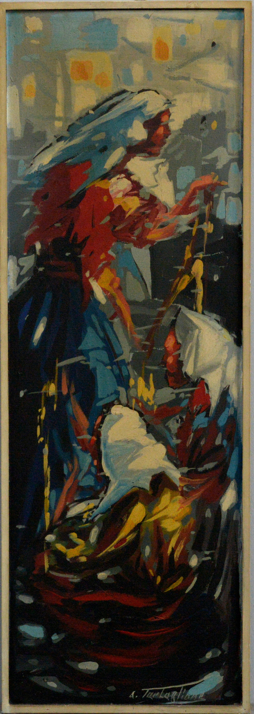 A. Tartaglione "Donne sarde" 1963 olio su tela (cm 90x30) firmato in basso a destra, iscritto,datato e locato Tripoli al verso. In cornice