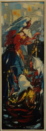 A. Tartaglione "Donne sarde" 1963 olio su tela (cm 90x30) firmato in basso a...