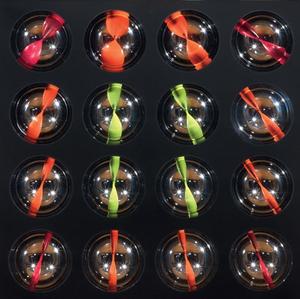 Franco Costalonga Venezia 1933 Oggetto cromocinetico OC M GAMN 13 Sfere in metacrilato metallizzato, plexiglass e acrilico, cm. 62,5x62,5x7 Firma e titolo al verso: Costalonga / OC M GAMN 13 / F. Costalonga.