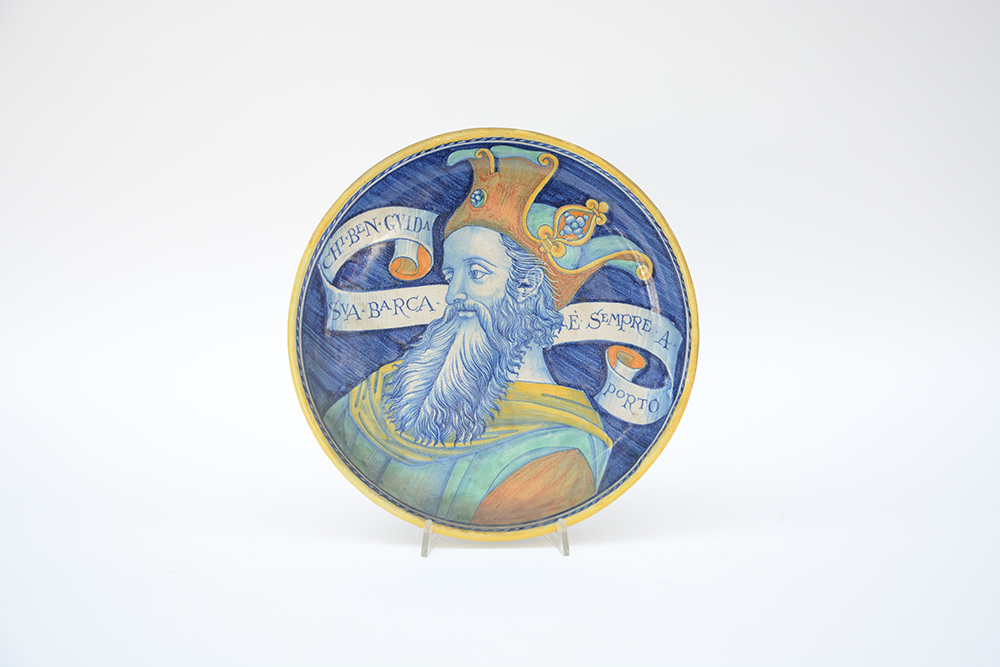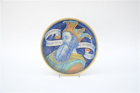 Manifattura di Deruta"Figura di saggio con proverbio"Piatto in maiolica...