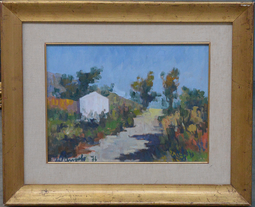 Alfredo D'Angelo "Paesaggio in sardegna" 1976 olio su tela (cm 30x40) firmato e datato in basso a sinistra, firmato, titolato e datato al retro, in cornice