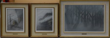 Lotto di tre pastelli su cartone raffiguranti paesaggi, firmati Barthelemy de...
