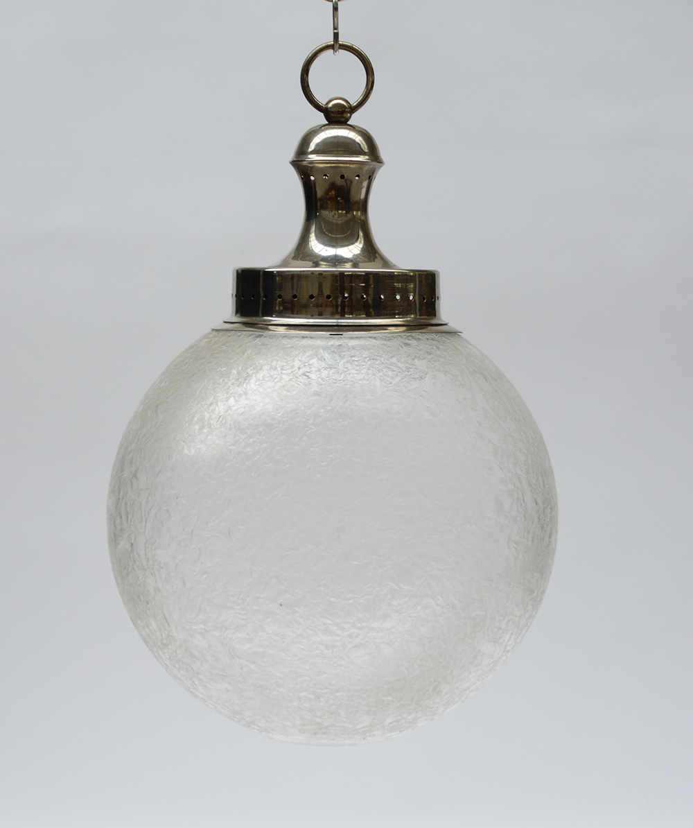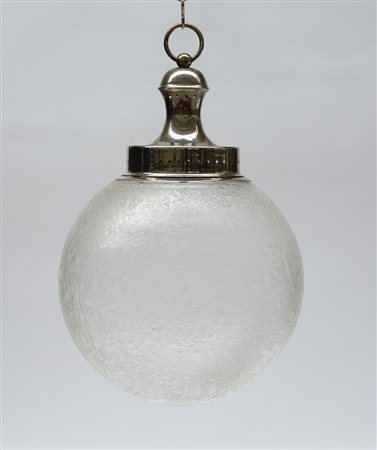 Lampada a sospensione a una luce con struttura in metallo e diffusore in vetro corrugato. Italia, anni '70. (h cm 45) (difetti)