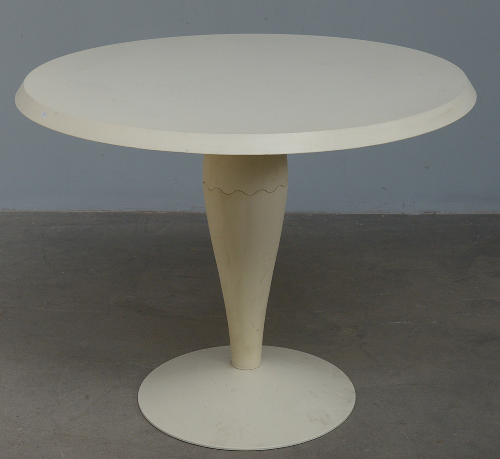 Tavolo rotondo modello "Miss Balu'". Produzione Kartell, Milano, 1988. Composto plastico color créme. (h cm 74; d cm 65) (lievi difetti)