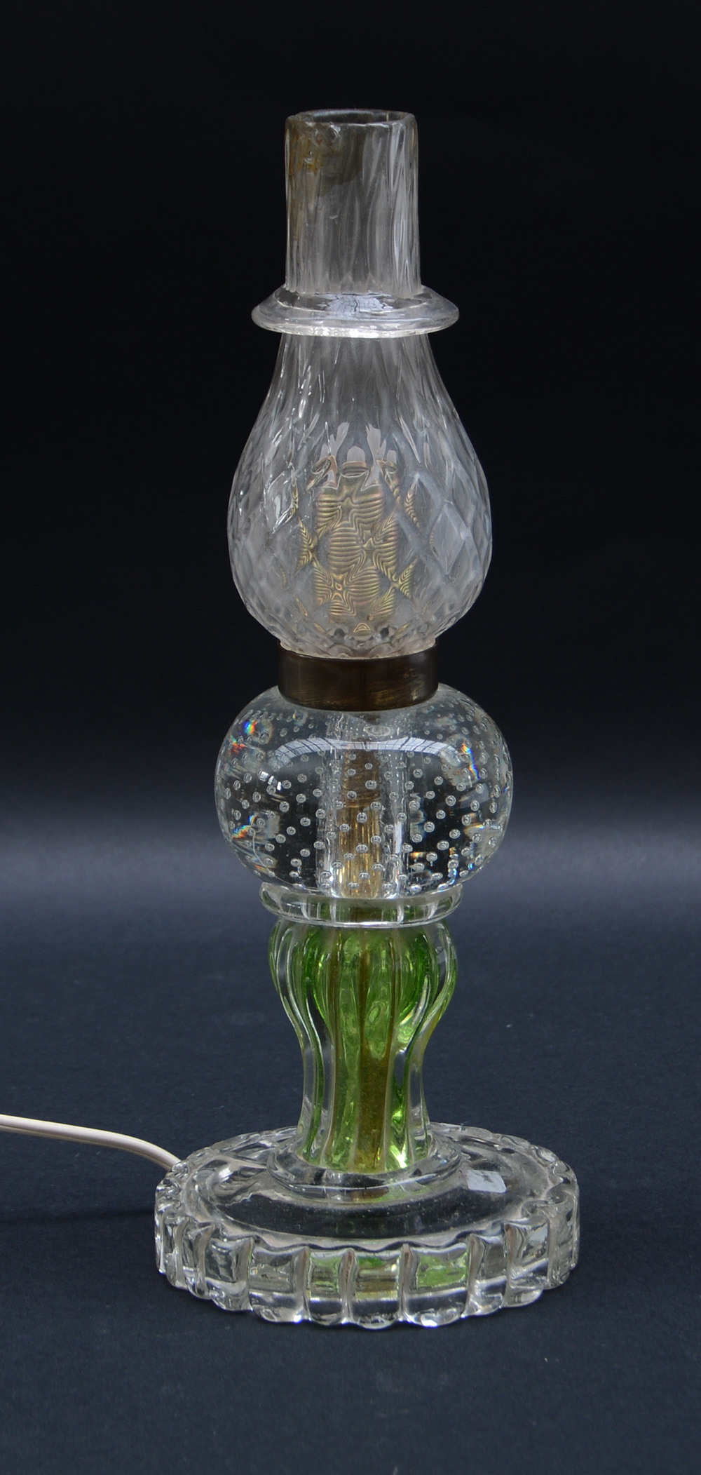 Lampada da tavolo in vetro incolore e verde con inclusione di bolle. (h cm 32) (lievi difetti)