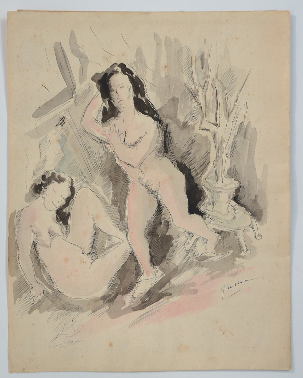 "Studio per figure" disegno a china e acquerello su carta (cm 33.5x26) Firmato in basso a destra (Difetti)