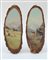 Coppia di curiosi dipinti ad olio su parte di ramo d'albero, raffiguranti...