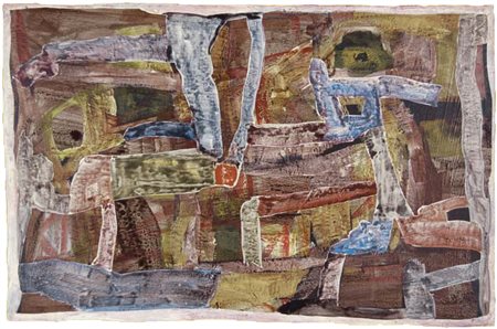 ANTON GIULIO AMBROSINI Colloquio 1963 tecnica mista e collage su tavola, 60x90 firma e data in basso al centro firma data e titolo al retro esposizioni Galleria l'Elefante Treviso; III? Premio Nazionale di Pittura "Campione d'Italia" 1963 - etichette e timbri al retro
