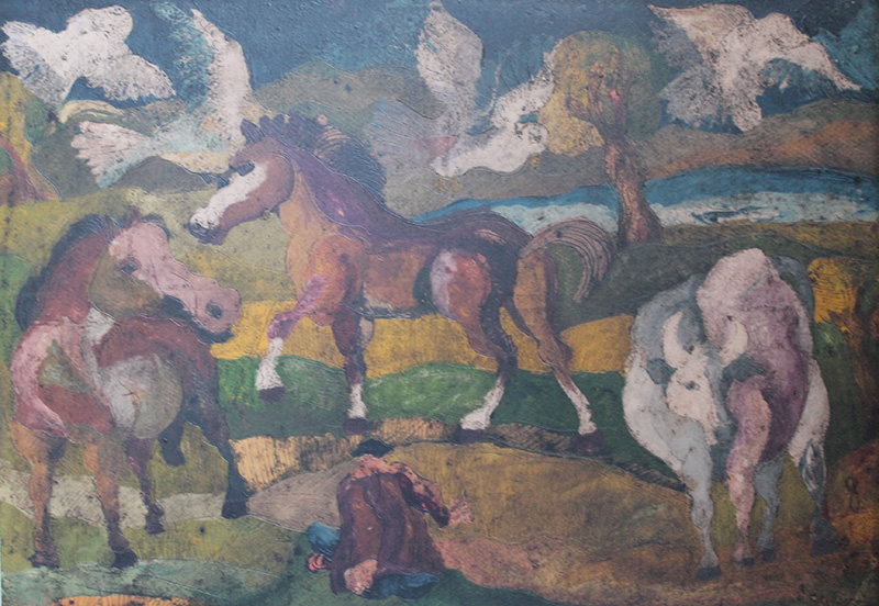 Beppe Serafini, Olio inciso su cartone pressato. Dimensioni: 50cm x70cm. Certificazione: Firmato retro opera