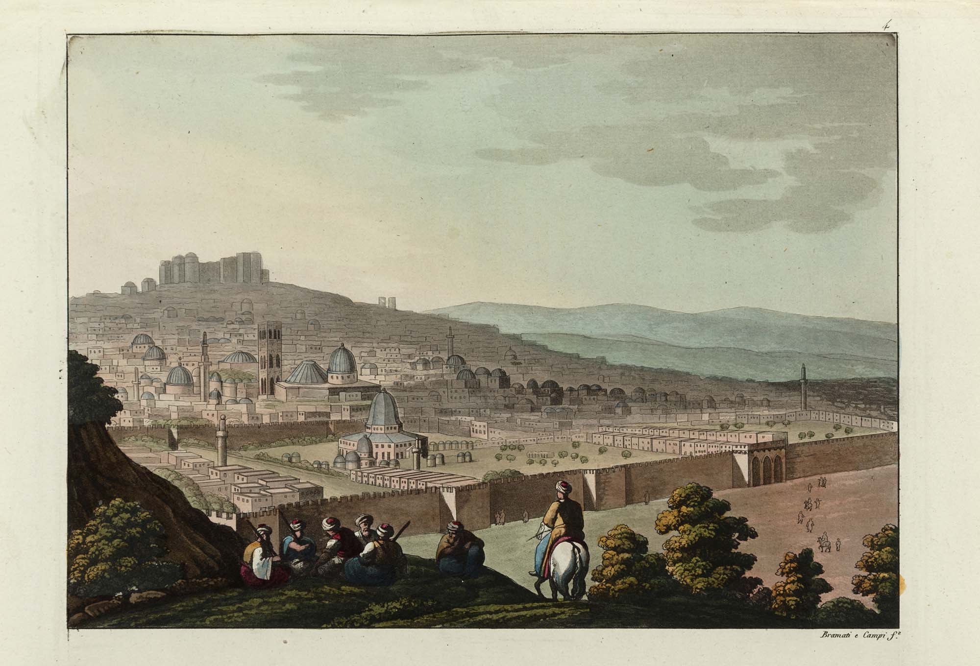 FERRARIO, Giulio (1767-1838) - Descrizione della Palestina. Milano: Società Tipografica de' Classici Italiani, 1831.Opera completa della mappa e delle tavole colorate all'acquatinta. Internamente in ottimo stato di conservazione con alcune pagine non ancora aperte.4to (247 x 180mm). Mappa ripiegata colorata nei confini, 30 tavole incise all'acquatinta, una parzialmente colorata con la pianta dell'antica e moderna Gerusalemme e una in bianco e nero con la pianta del Tempio di Salomone (strappetto appena percettibile al margine esterno della mappa che è in ottime condizioni, minime fioriture marginali a poche carte). Legatura moderna in tela blu con angoli in metallo.-ENFERRARIO, Giulio (1767-1838) - Descrizione della Palestina. Milan: Società Tipografica de' Classici Italiani, 1831.A copy complete of the map and the hancoloured plates. Internally in very good condition with some uncut pages.4to (247 x 180mm). 30 hand-coloured aquatint plates, folding engraved map coloured in outline, one hand-coloured engraved plan, one uncoloured plate (very minor clean tear to outer margin of map, light minor spots to margins of a few leaves). Modern blue cloth with metal corner-pieces.