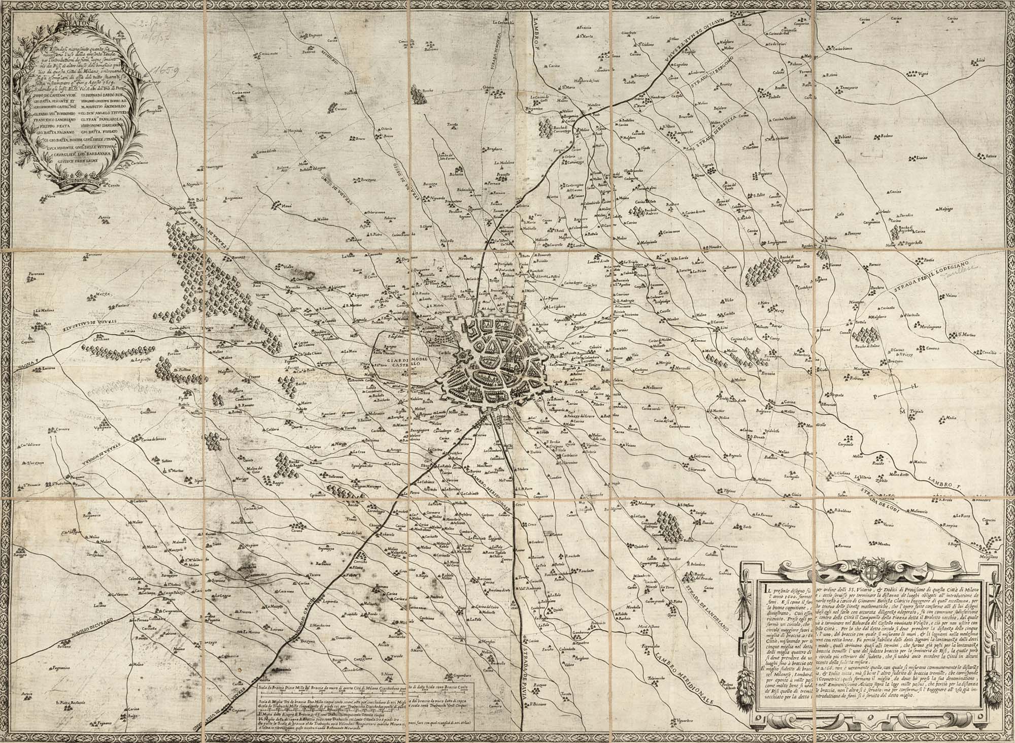 [MILANO] - CLARICI Giovanni Battista (1542-1602) - Mappa di Milano e circondari