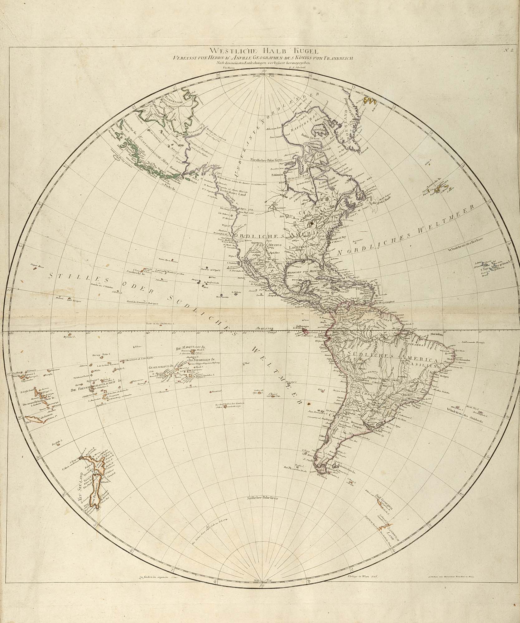 SCHRAMBL, Franz Anton (1751-1803) - Allgemeiner grosser Atlass. Vienna: Joseph Philipp Schalbacher, 1800.Imponente atlante. La maggior parte delle mappe (datate 1786-1800) sono da d'Anville, Bonne, Bowles, Cassini, Djurberg, Faden, Kitchin, Lopez, Pownall, Rizzi-Zannoni, Schmid, Schinek, Wussin e altri, e molte, se unite, possono formare grandi mappe come il set di 24 mappe della Germania.Folio elefante (620 x 430mm). Grande antiporta a doppia pagina incisa in rame, 114 (su 131) mappe incise in rame, perlopiù a doppia pagina e alcune colorate nei confini (la maggior parte delle carte estese al margine esterno, il frontespizio con l'aggiunta di una "s" a penna andata persa, alcune carte brunite e altre con piccoli difetti, strappi, macchie di umidità o mancanze). Mezza pelle su carta coeva (rovinato e con mancanze al dorso e alle estremità).-ENSCHRAMBL, Franz Anton (1751-1803) - Allgemeiner grosser Atlass. Vienna: Joseph Philipp Schalbacher, 1800.An impressive atlas. Most of the maps (which are dated 1786-1800) are after d'Anville, Bonne, Bowles, Cassini, Djurberg, Faden, Kitchin, Lopez, Pownall, Rizzi-Zannoni, Schmid, Schinek, Wussin and others, several of which would form large wall- maps if joined, for example the twenty-four sheet map of Germany.Elephant folio (620 x 430mm). Double-page engraved frontispiece, 114 (of 131) engraved maps, mostly double-page and some handcoloured in outline (most extended at outer margin, title with an "s" added in pen, some browning and light wear, some tears, waterstaining and losses). Half calf on contemporary boards (some wear and loss at spine and extremities).