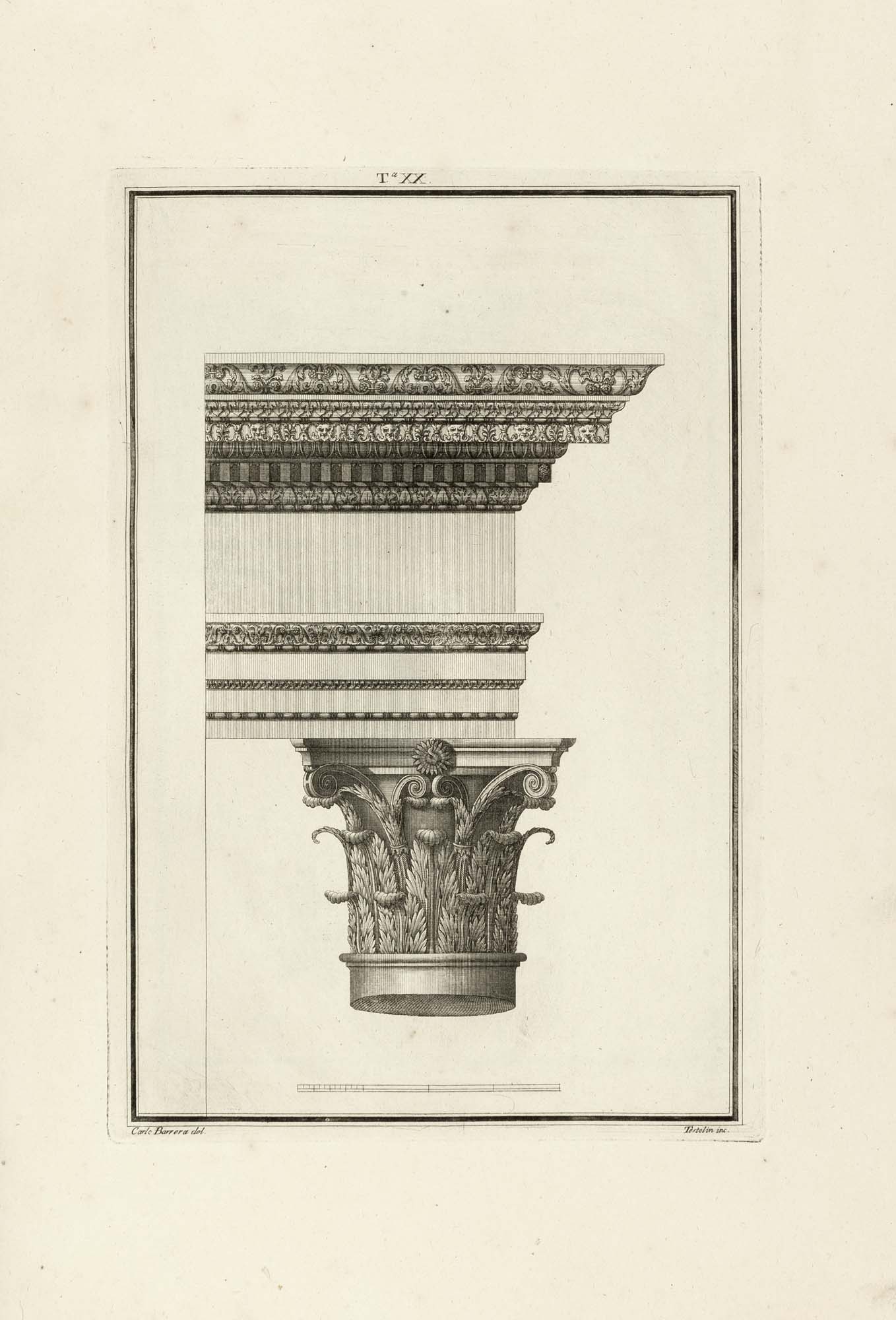 PALLADIO, Andrea (1518-1580) - Les Thermes des Romains. Vicenza: Francois Modena, 1785.Ottima raccolta di tavole di questa celebre opera del Palladio solitamente unita a Les Bâtimens et les desseins.Folio (482 x 352mm). Antiporta incisa in rame con ritratto dell'autore, vignetta xilografica al frontespizio e capilettera, dedica a Jerome Ascane Giustinan con grande vignetta e 25 tavole incise in rame e numerate, molte a doppia pagina (tracce di polvere al frontespizio e alle prime carte). Mezza pelle coeva su piatti in carta decorata (difetti e perdite alla legatura).-ENPALLADIO, Andrea (1518-1580) - Les Thermes des Romains. Vicenza: Francois Modena, 1785.A fine work by Palladio usually found together with Les Bâtimens et les desseins.Folio (482 x 352mm). Additional engraved title with portrait of the author, xylographic vignette on title and initials, dedication to Jerome Ascane Giustinan with large engraved vignette and 25 engraved numbered plates, many double-page (some soiling to first leaves). Contemporary half calf over decorative paper boards (rubbed and scuffed).