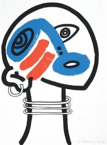 Keith Haring Kutztown 1958 - New York 1990 The story of red and blue, 1989-90 Serigrafia a colori, es. A. P., cm. 56x42 Firma e data in lastra in basso a destra: K. Haring 90. Al verso: timbro con dichiarazione di autenticità The Keith Haring Estate, in data 14/6/1990, e indicazione di tiratu- ra: A. P.