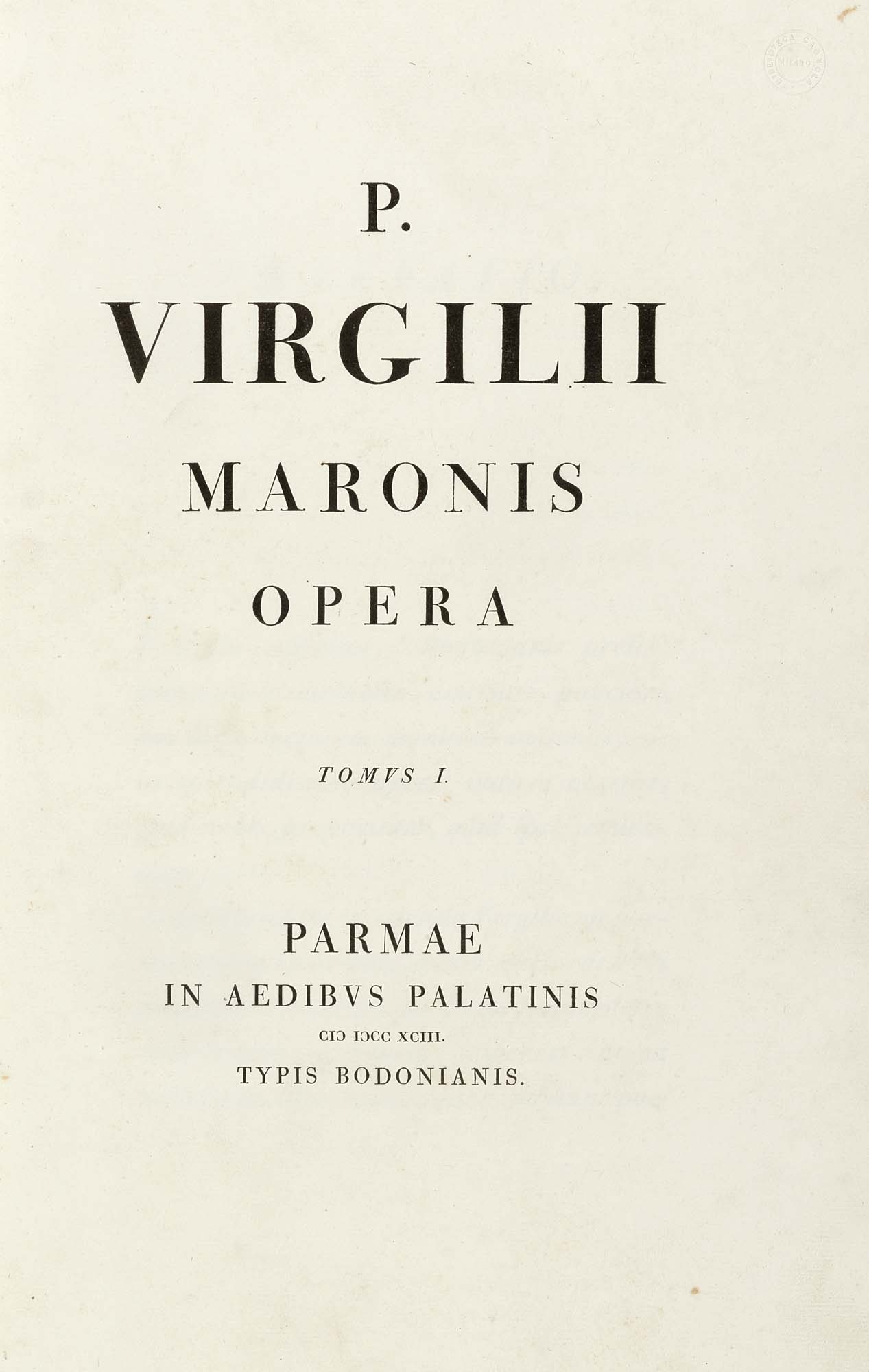 VIRGILIO, Publio Marone (70-19 A.C.) - Opera. Parma: Giambattista Bodoni, 1793.