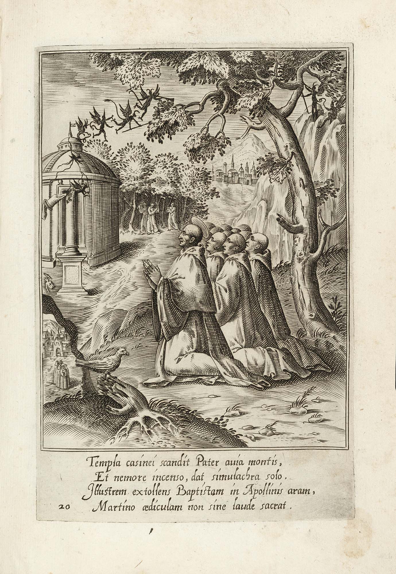 A nice collection of plates depicting the life of San Benedetto engraved by Bernardino Passeri under the supervision of Sangrino, Abbey of Montecassino.
