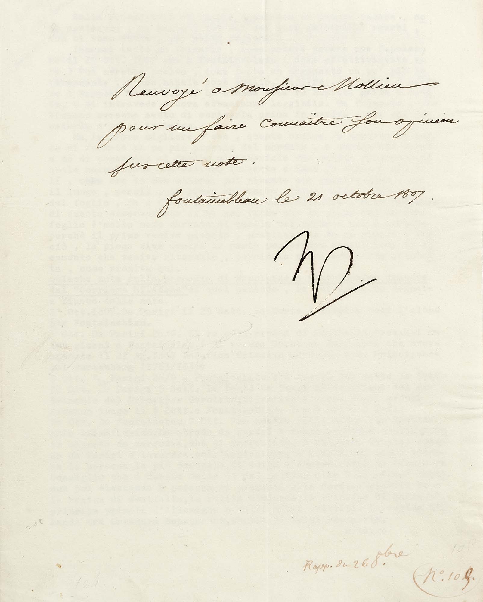 NAPOLEONE I - Sigla autografa. Fointainbleau: 21 Ottobre 1807.Appunto, probab