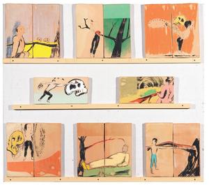 Enzo Cucchi Morro d'Alba (An) 1949 Eroé, 2003 Stampa a colori su mattone, 14 elementi, multiplo, es. 19/30, cm. 14,3x29 (ogni elemento) Alcuni con tiratura e firma al verso: 19/30 E. Cucchi. Foto autenticata dall'artista. Edizione di 30 esemplari più 4 dedicati dall'artista ad personam. Editore Poggiali e Forconi Arte Contemporanea, Firen- ze. Bibliografia: Enzo Cucchi, Eroé, Poggiali e Forconi, Fi- renze, 2003.