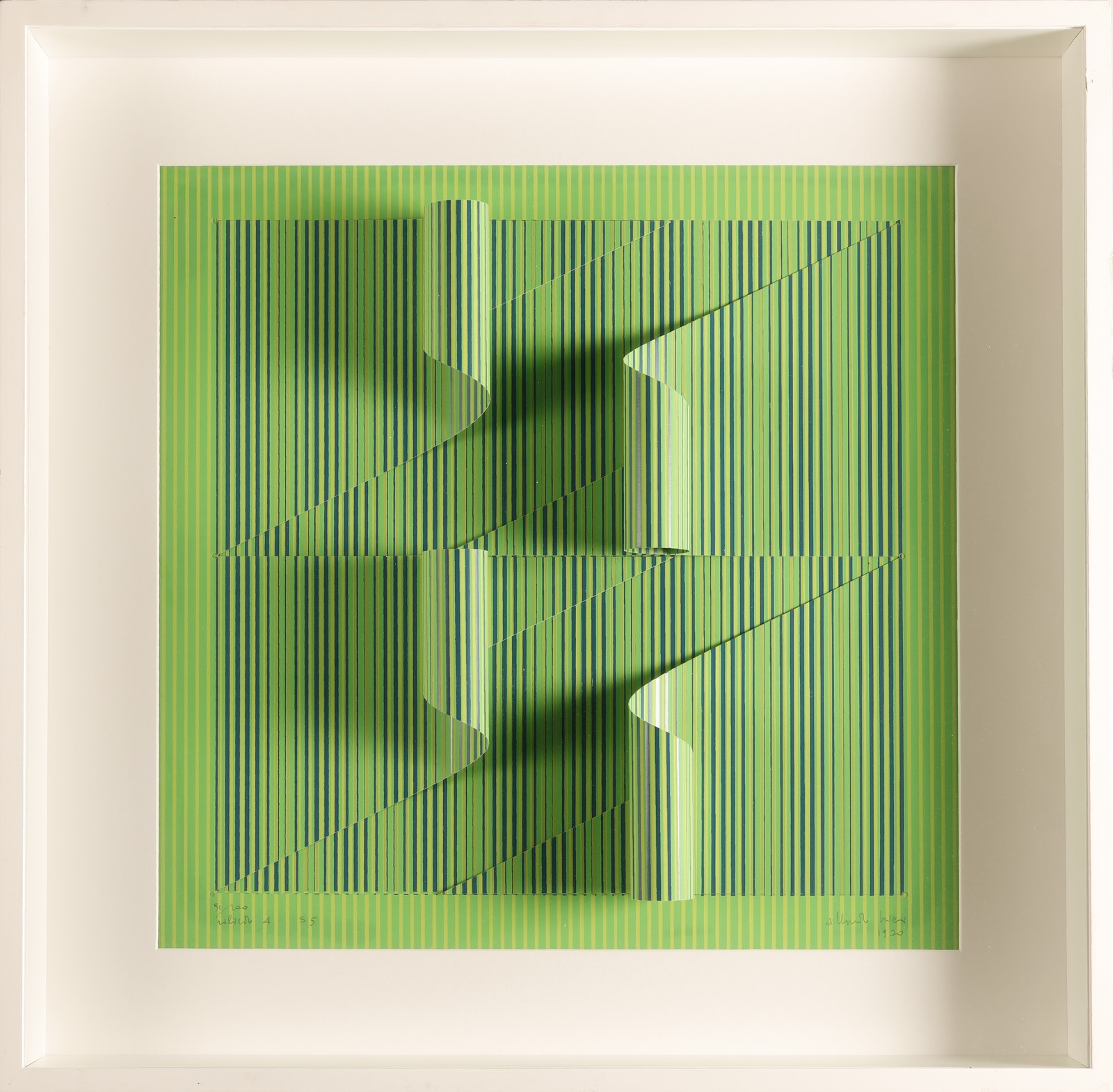 BIASI ALBERTO (n. 1937) Rilievo 4 S5. . 1970. Litografia su carta fustellata e arrotolata. Cm 40,00 x 40,00. 91/200. Tiratura, firma, titolo e anno in basso a matita. . Cornice presente