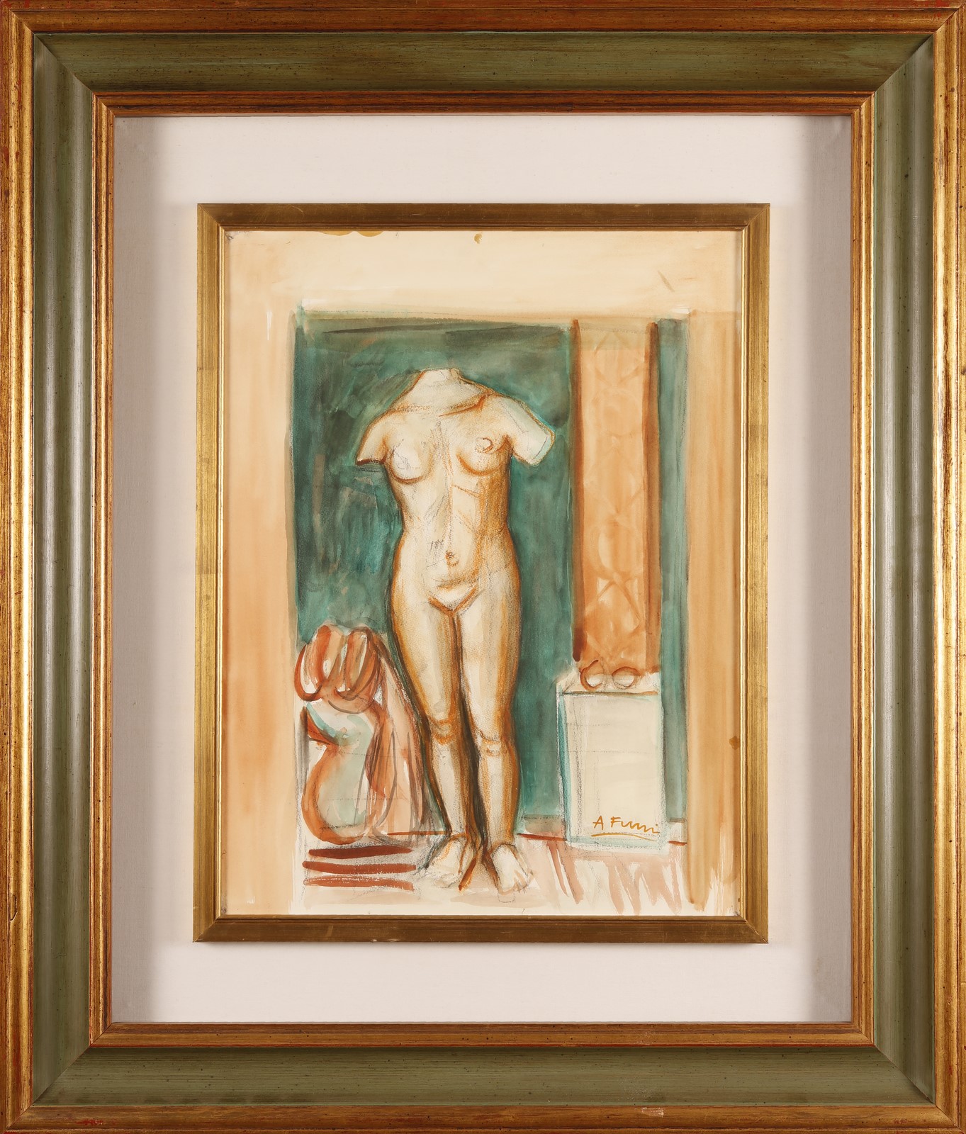 FUNI ACHILLE (1890 - 1972) Senza titolo. Tecnica mista su carta. Cm 35,00 x 47,00. Firma in basso a destra. Presenti difetti. Cornice presente