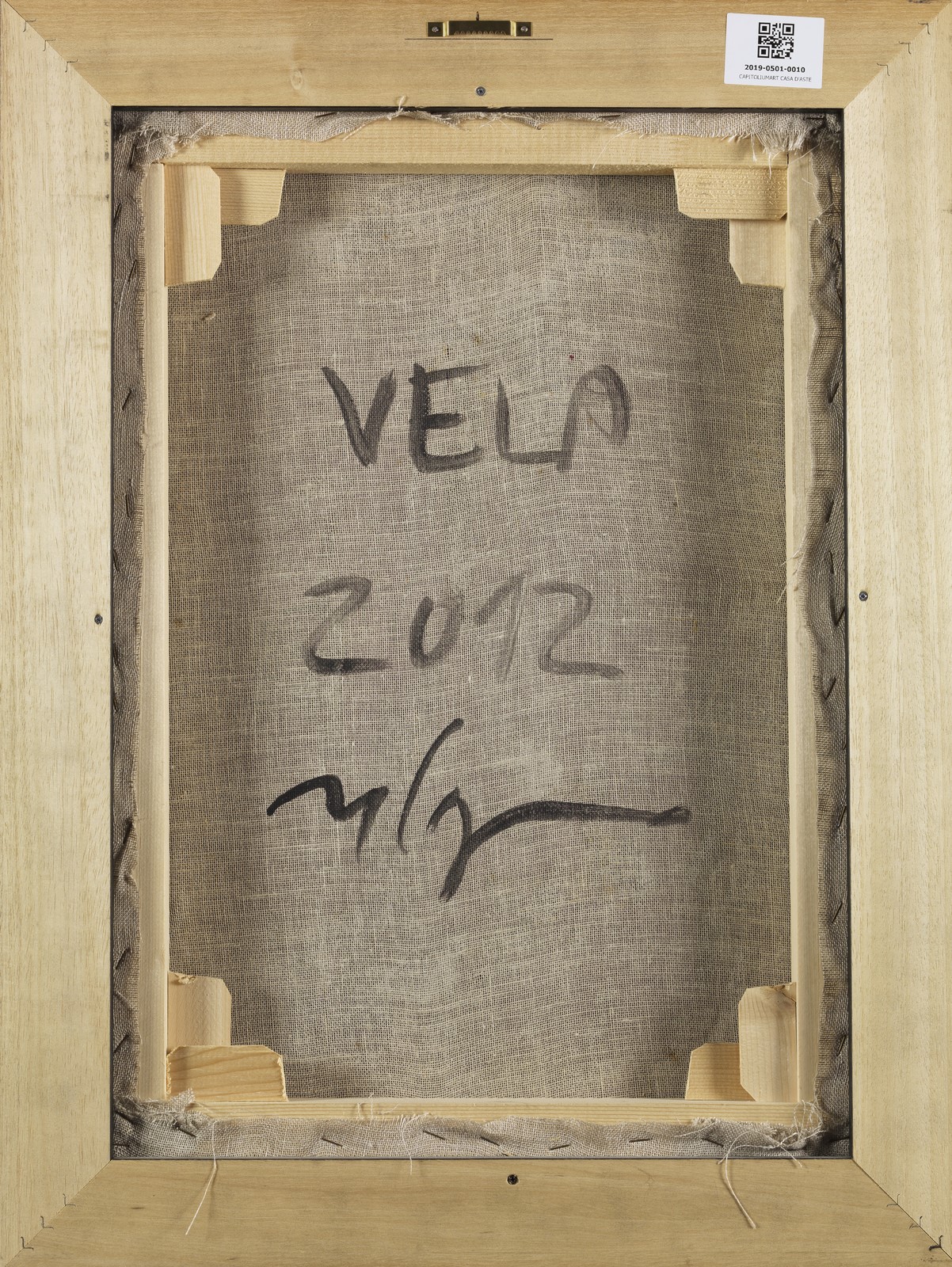 VITALI VELASCO (n. 1960) Vela. 2012. Tecnica mista su carta su tela. Cm 41,70 x 60,30. Al retro titolo, firma e anno. Autentica dell'artista su fotografia riportante il relativo numero d'inventario. Cornice presente
